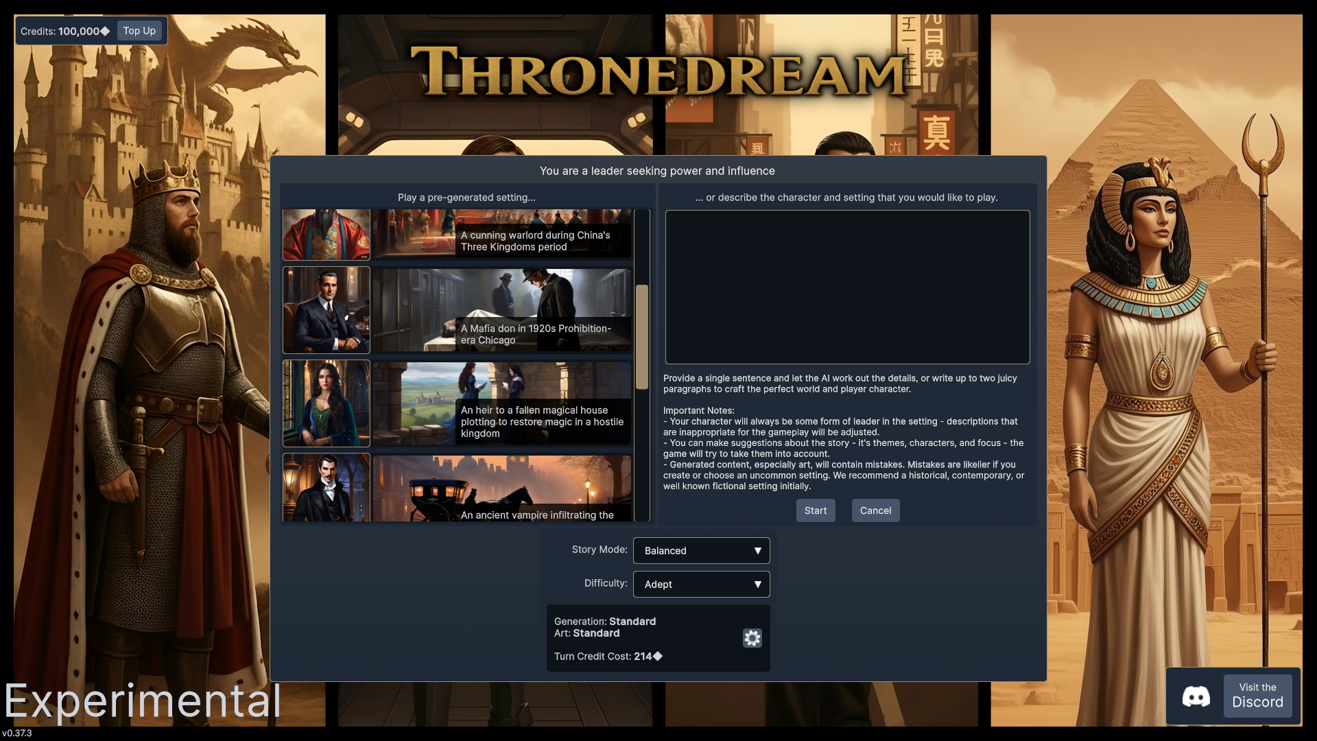 Thronedream is a solo-play card game where unique cards and stories are generated in real-time based on your chosen setting. Want to be a Viking jarl conquering England during the Dark Ages? A dragon rider defending the last free kingdom from an undead horde? A hacker building a criminal empire in Neo-Tokyo's neon underworld? The choice is yours.