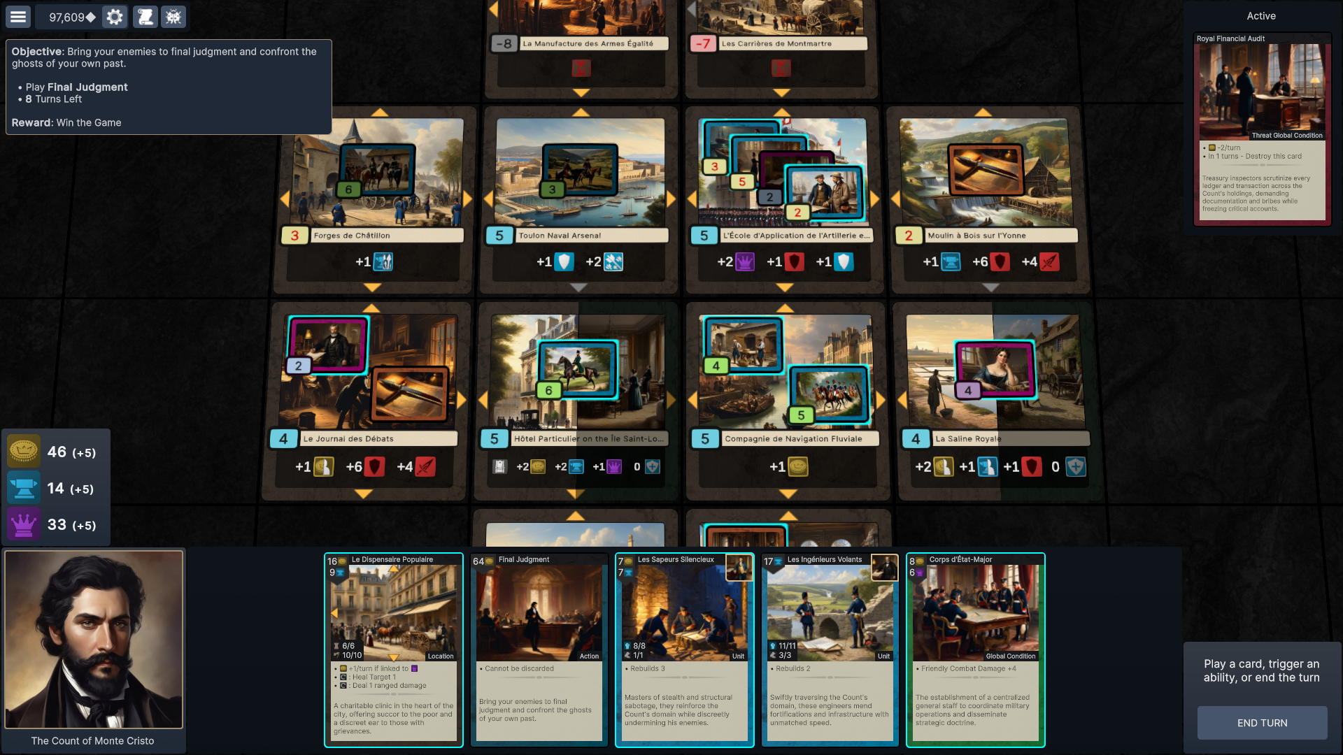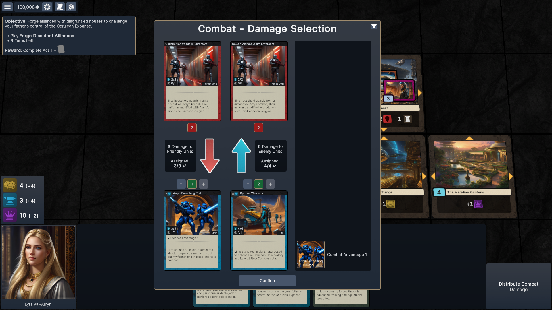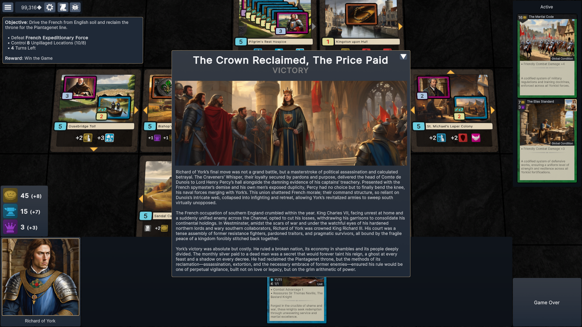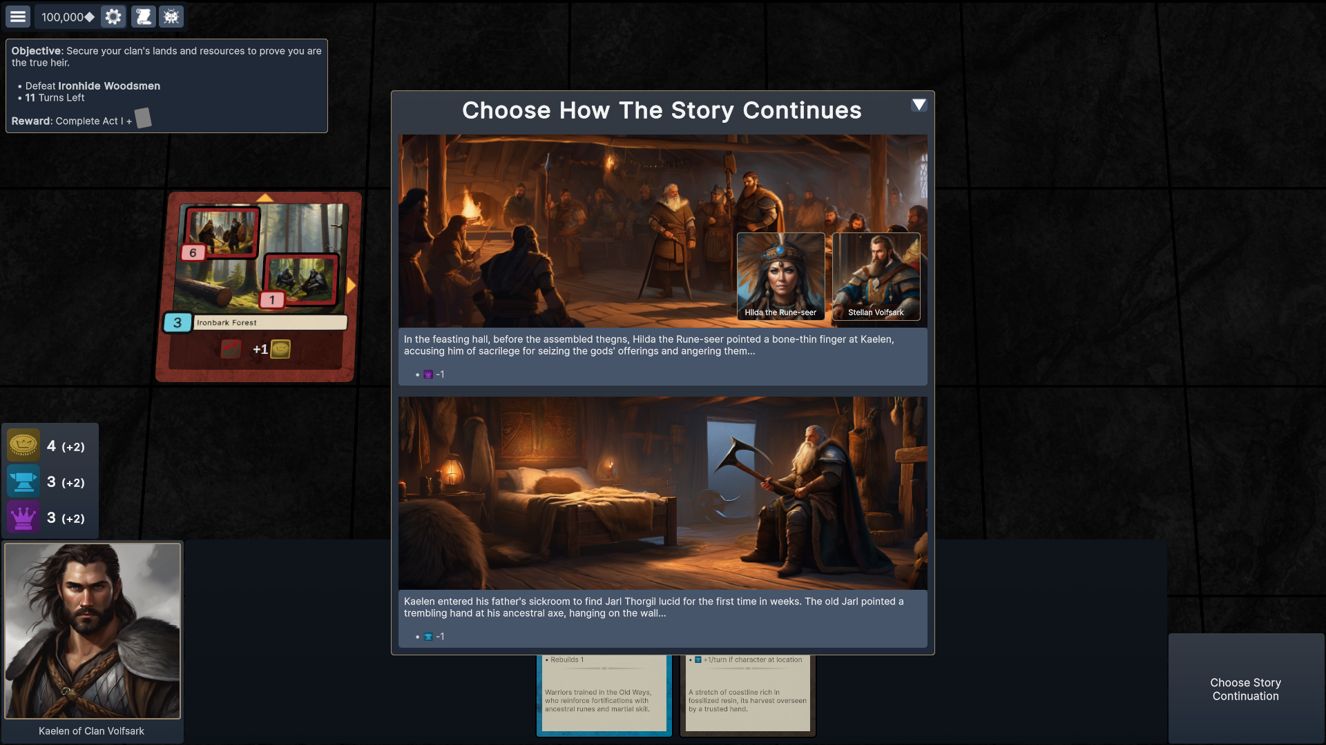 Every game tells a different story. Cards are dynamically created to fit your world, decisions you make shape the narrative, and gameplay outcomes impact the story's direction. Build your realm with location cards, defend it with units, and navigate challenges through character cards and tactical positioning.